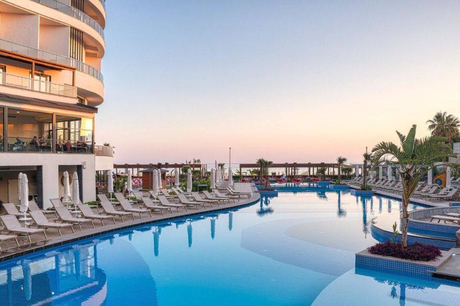 Das SplashWorld AQI Venus Beach ist ein echtes Abenteuerland für Familien, die Wasserspaß lieben. Mit einem großen Wasserpark und 12 spektakulären Rutschen, mehreren Pools sowie einem eigenen Baby- und Kinderbereich ist für jede Altersgruppe etwas dabei. Die weitläufige Gartenanlage führt direkt zum Sandstrand, während das All-inclusive-Angebot für entspannte Urlaubstage sorgt. Kinderclub, Minidisco, Spielplätze und ein abwechslungsreiches Animationsprogramm bieten Unterhaltung von morgens bis abends. Gleichzeitig genießen Eltern Relaxpools, Strandtage oder das lebendige Nachtleben in der Nähe. Ein ideales Resort für aktive Familien, die Spaß, Sonne und unbeschwerte Momente suchen.