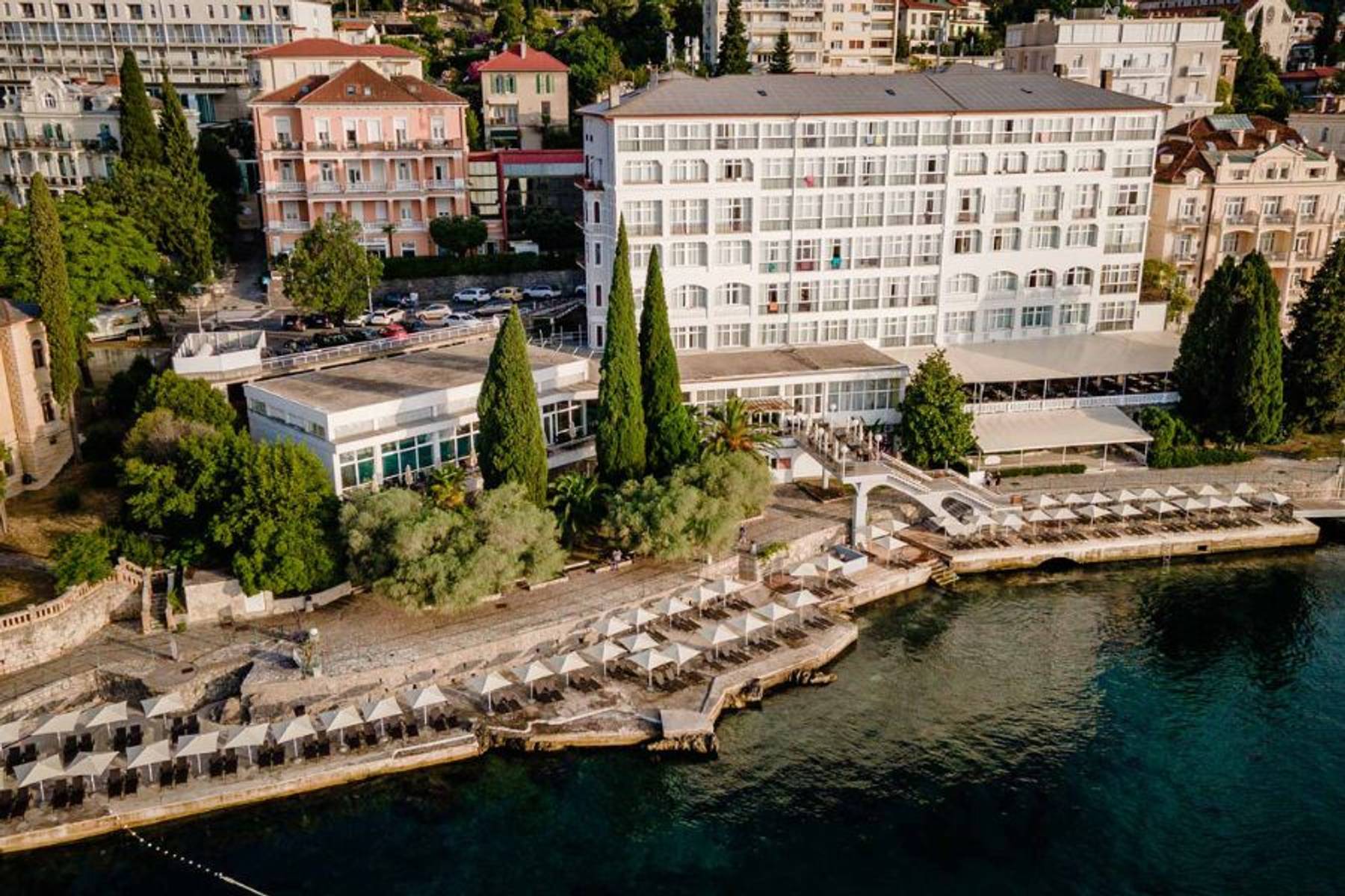 Das Hotel liegt direkt an der Küstenpromenade in unmittelbarer Nähe zum Stadtzentrum mit wunderschönem Blick auf die Kvarner Bucht und deren Inseln.