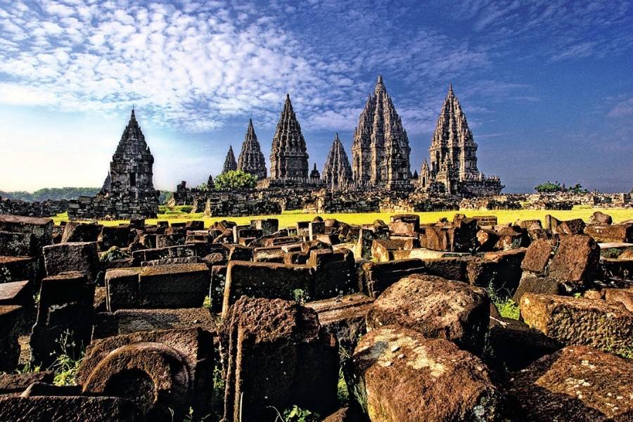 Java ist ein bunter Schmelztiegel aus Kulturen, Traditionen und Religionen. Zwischen Vulkanen und Reisterrassen erheben sich jahrhundertealte Bauwerke wie Borobudur, das größte buddhistische Heiligtum der Welt, und der hinduistische Tempelkomplex Prambanan mit filigranen Reliefs. Javas Kultur reicht weit über Tempel hinaus: Schattenpuppenspiele, klassische Gamelan-Musik und kunstvoller Batikdruck sind lebendige Traditionen. Auf den Märkten duftet es nach Gewürzen, während uralte Rituale in den Dörfern den Alltag prägen.