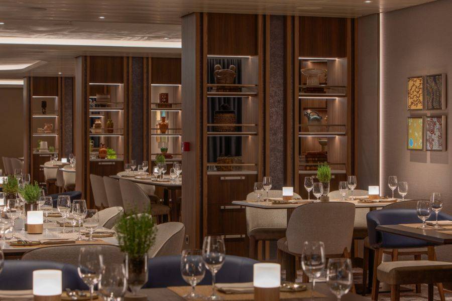 An Bord verbinden sich kulinarische Exzellenz und stilvolles Ambiente. Acht Restaurants und mehrere Lounges bieten Vielfalt – von eleganten Menüs im La Dame bis zu entspanntem Dining unter freiem Himmel. Das S.A.L.T. Kitchen interpretiert die Aromen Südamerikas mit wechselnden regionalen Gerichten wie peruanischem Ceviche oder argentinischem Rindfleisch. Ausgewählte Weine, exklusive Events und S.A.L.T.-Erlebnisse – von Masterclasses bis zu Picknicks auf Weingütern – machen jede Etappe auch kulinarisch erlebbar.