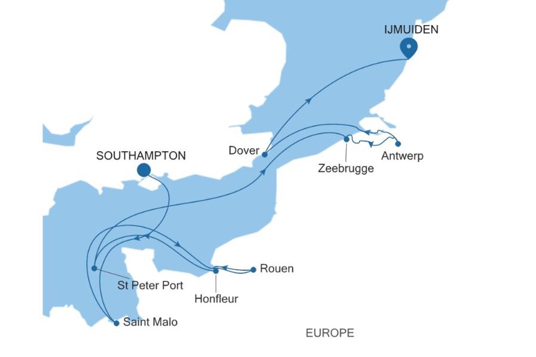 Erleben Sie ab Southampton eine facettenreiche Reise durch gleich fünf Länder. In Saint-Malo erwarten Sie historische Festungsanlagen, in Rouen und Honfleut erleben Sie die ganze Schönheit der Normandie. Guernsey bezaubert mit britischem Inselcharme, während Antwerpen und Zeebrugge belgische Bierkultur und Kunstgenuss bieten. Zum Schluss geht es nach Dover und weiter ins lebendige Amsterdam.