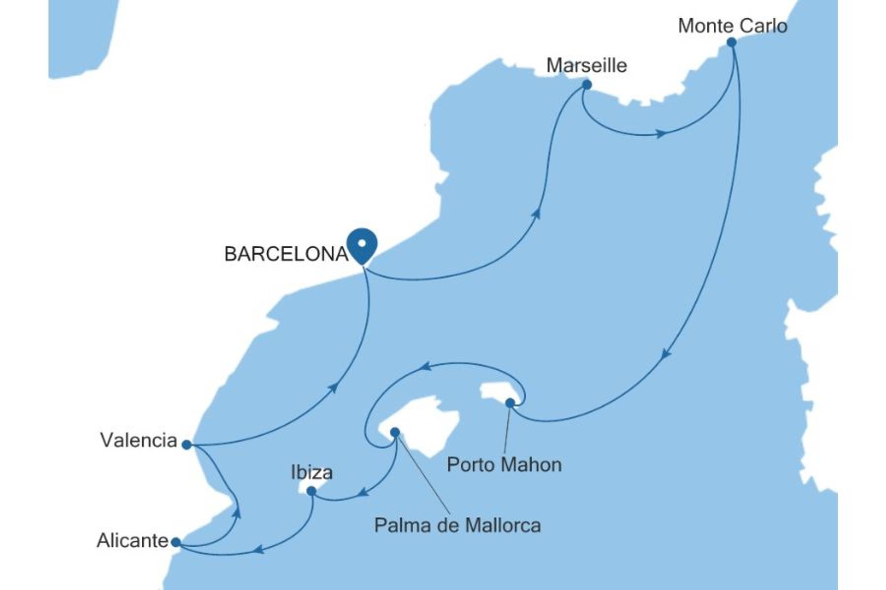 Erleben Sie eine unvergessliche Spätsommer-Kreuzfahrt voller Kontraste. Nach Ihrem Start in Barcelona, genießen Sie in Marseille mediterranes Flair, während Sie in Monte Carlo Glanz und Glamour der Côte d’Azur erwartet. Anschließend entdecken Sie das faszinierende Trio der Balearen: die Gelassenheit Menorcas, die lebendige Vielfalt Mallorcas und die mystische Schönheit Ibizas. Auf dem Festland setzen sich die Höhepunkte fort. Vom Castillo in Alicante über die kulinarische Vielfalt Valencias bis zur einzigartigen Architektur Katalonies.
